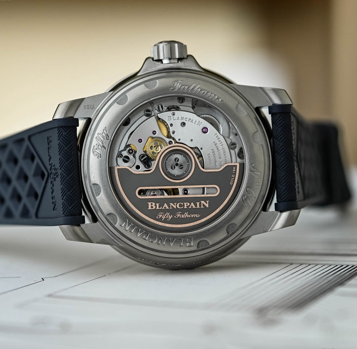 We use a genuine Swiss ETA base movement, carefully reworked to match the Blancpain Calibre 1150 specs: