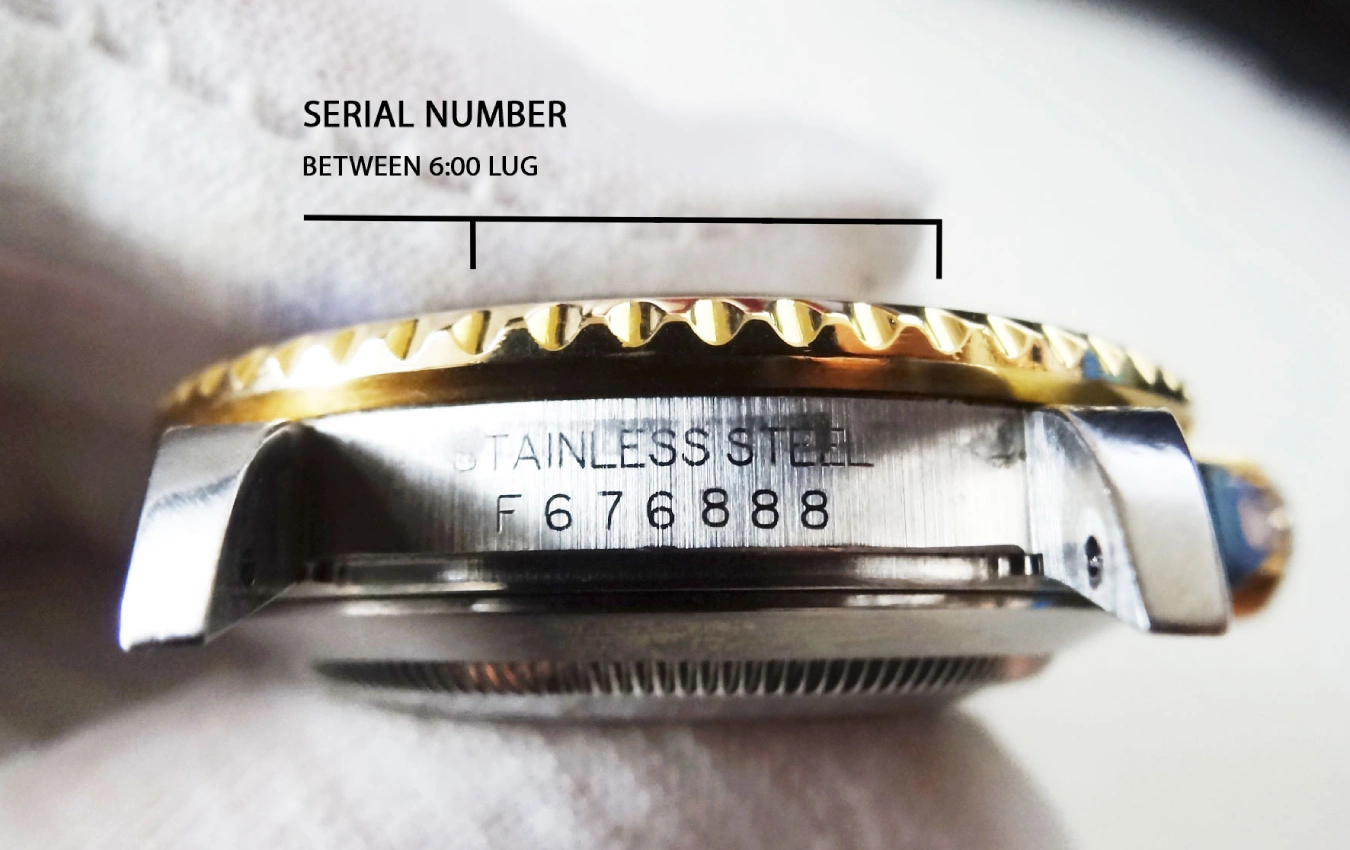 Note: Transitional models from 2005-2008 may have the serial number in both locations as Rolex phased in the new system.
