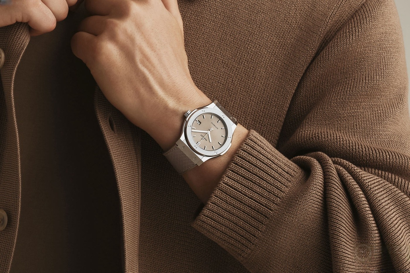 Known for its bold and avant-garde designs, Hublot watches are instantly recognizable. Yet, there's a more understated side to the brand—one expressed through minimalist aesthetics and sophisticated design. This is where the Essential series comes in. First introduced in 2024 with the widely acclaimed Essential Grey edition, Hublot followed up with the new Essential Taupe models, available in two super clone sizes: 42mm (Ref. 542.NX.4610.NR.HEC25) and 45mm (Ref. 511.NX.4610.NR.HEC25).