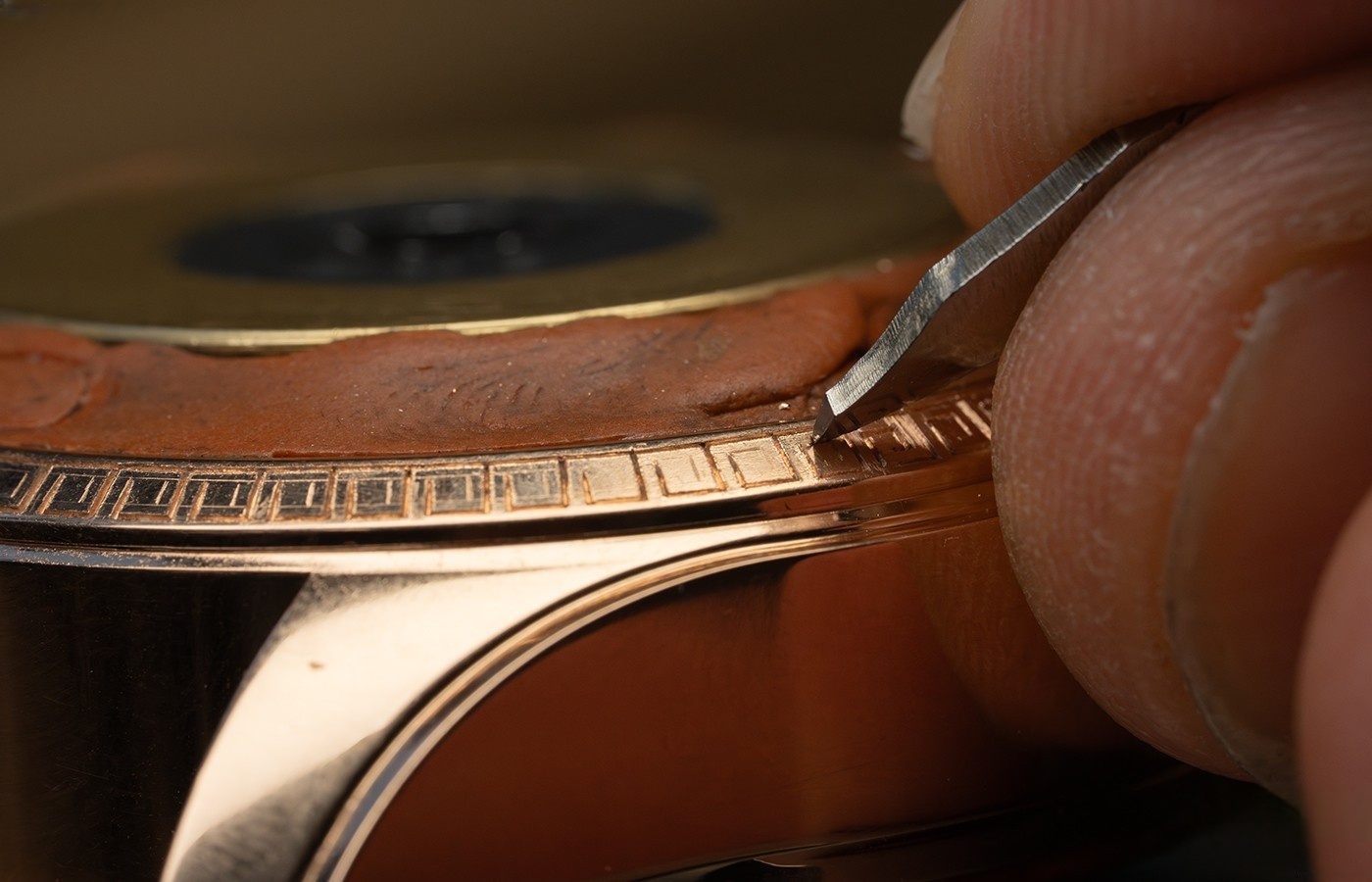 | Case | 18K 5N pink gold with hand engraving Diameter: 45 mm |
